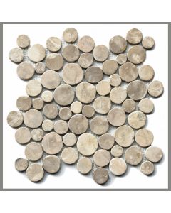 Durch Wasser, meist von Flüssen, Bächen und Ozeanen, entsteht Kies. Diese von der Natur rund geschliffenen Steine werden im Volksmund auch Kieselsteine genannt. Nach Definition des Deutschen Institut für Normung (DIN) bezeichnet Kies Gesteinsgrößen zwischen 2 und 63 mm. Kies wird im Tagebau gefördert und zum Beispiel zur Herstellung von Beton verwendet. Als Mosaik auf Netz geklebt ergibt er reizvolle Muster. Kieselmosaik bzw. Kieselsteinmosaik wird daher sowohl in Wandfliesen und Bodenfliesen ...