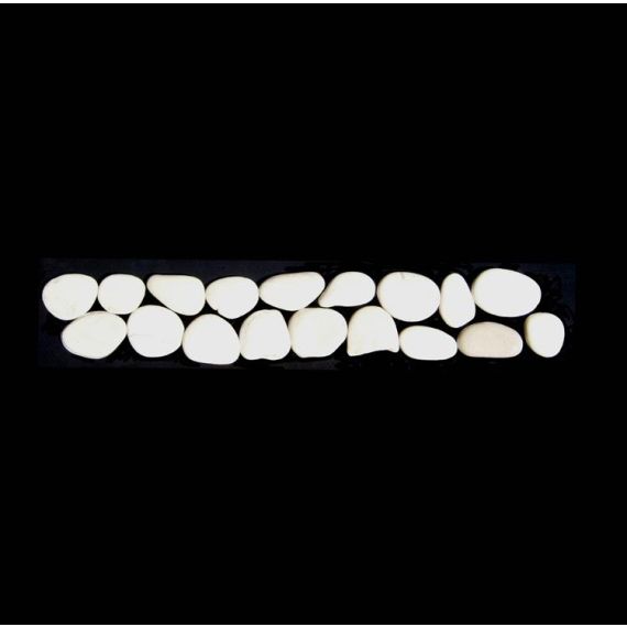 Die Alaska River Bordüren, ein begehrtes Kieselmosaik als Mosaikfliese. Mit seinen zarten Weißtönen liegt es voll im Trend. Diese Bordüre zählt zur unseren Premium- Fliesen, bei denen die einzelnen Steine vielfach durch Schablonen auf Höhe, Größe und Form selektiert und dann per Hand sorgfältig auf dem Trägernnetz vorverlegt wurden. Die relativ ebene Mosaik Oberfläche ist einer Fliese fast gleich und auch für die Verlegung als Wandfliesen, in Designerküchen, im Badezimmer, in der Sauna usw. geeignet.